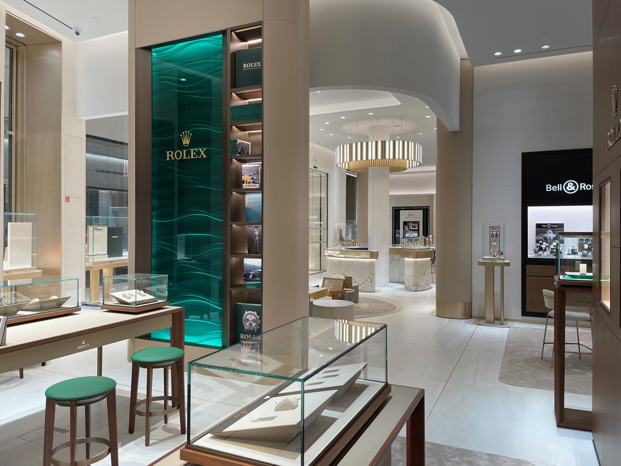 Le projet Auberi Cap 3000 s’inscrit dans l’ouverture du flagship de la Maison au sein du plus grand centre commercial de la Côte d’Azur. Konstructa y intervient en contractant général, prenant en charge la réalisation de l’agencement général ainsi que l’ensemble du mobilier, qu’il s’agisse des espaces dédiés à la Maison Auberi ou des corners horlogers Hublot et Bell & Ross, jusqu’aux vitrines Cartier. Sous la direction artistique et la maîtrise d'œuvre de l’agence Au Delà de l’Idée — Didier Masquida et Ute Wegener —, et en collaboration avec Performances LBA pour l’exécution, le projet allie exigence de coordination et précision artisanale pour composer un écrin multi-univers d’une cohérence remarquable.