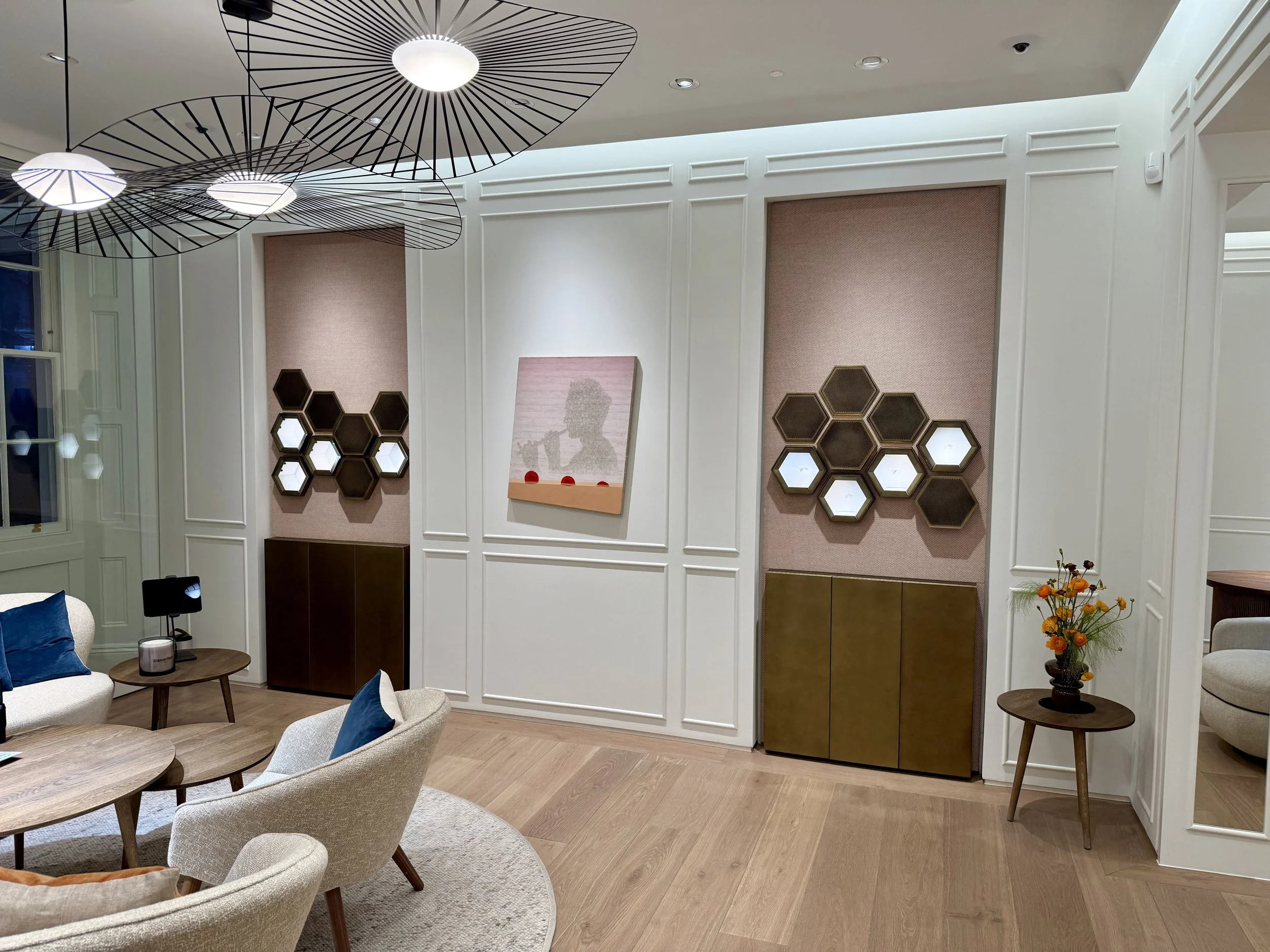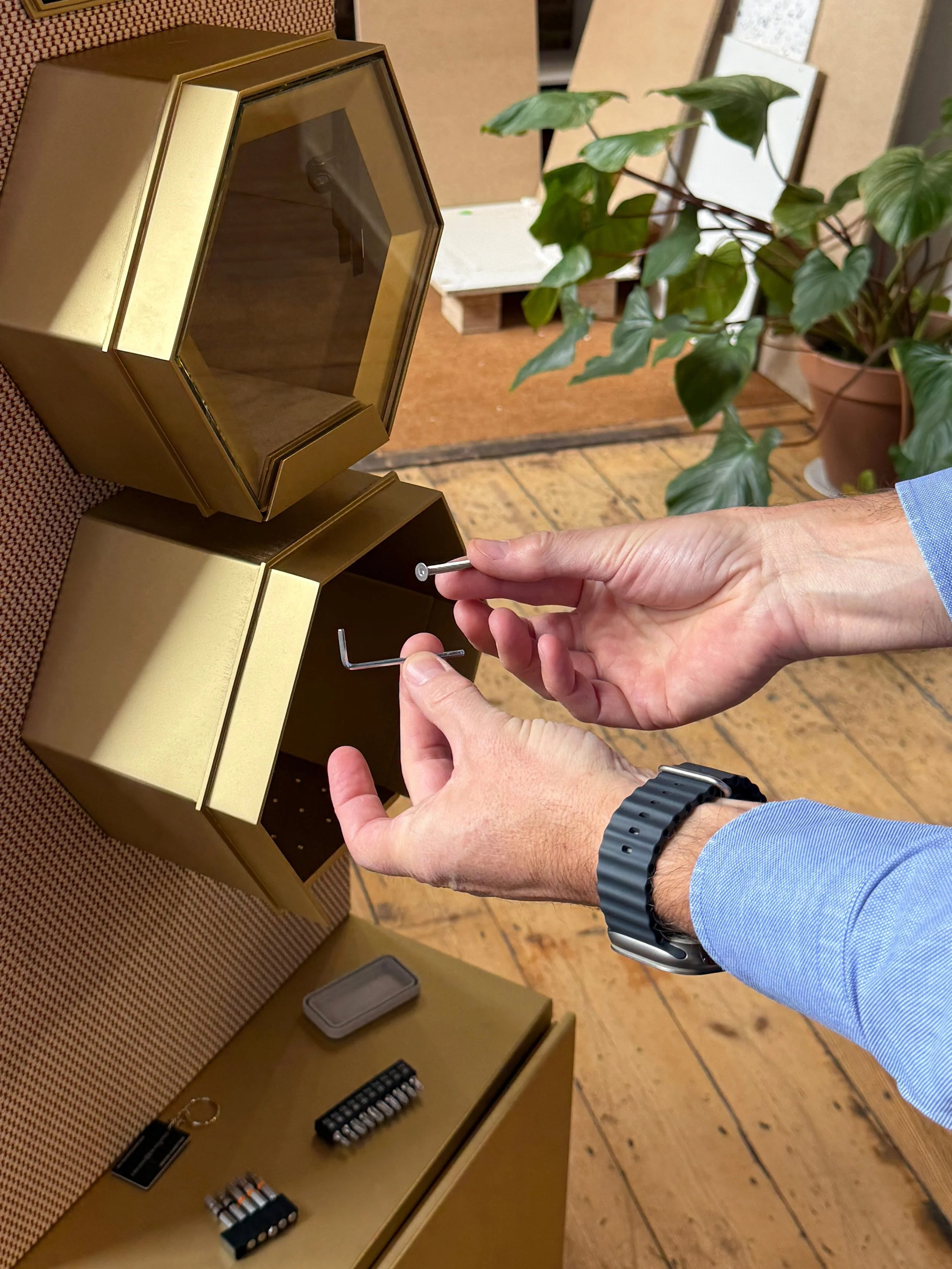 Dans l’une des villes les plus dynamiques du Royaume-Uni, Konstructa réalise le mobilier d’agencement sur mesure d’un espace horloger de prestige, sous la maîtrise d'œuvre de Johnson Pinney Architects et en collaboration avec Portview pour l’exécution, sous le contrôle de Millbridge Group. Plaquage de noyer, noyer cannelé et noyer massif se conjuguent au tissu Kvadrat et aux vitrines en structure nid d’abeilles — un soin du détail porté jusqu’au dernier élément.