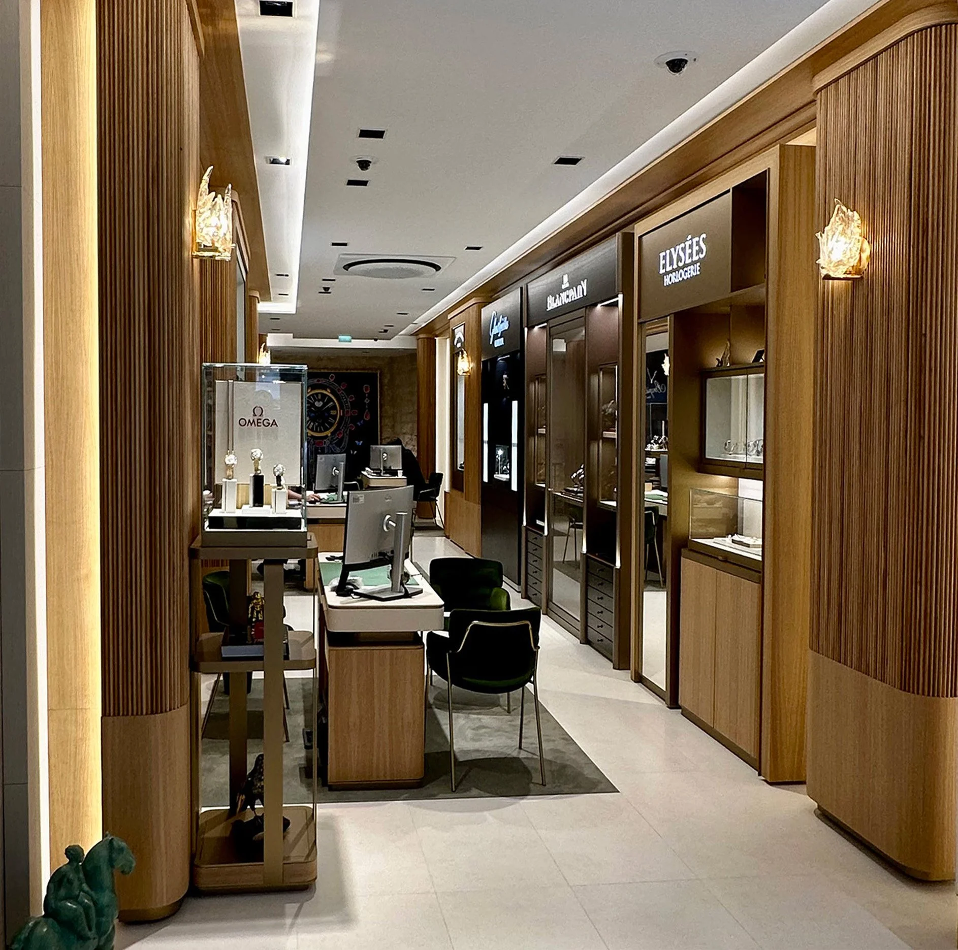Le projet Élysées Horlogerie s’inscrit dans une relation de confiance nouée de longue date avec la famille Sfeir. Konstructa y intervient en contractant général, assumant pleinement la conception, la maîtrise d'œuvre et la réalisation de l’agencement. Cette intervention d’exception, portée par une exigence partagée et une connaissance mutuelle approfondie, illustre ce que permet une collaboration fondée sur la durée : une exécution sans compromis, au service d’un espace à l’identité forte.