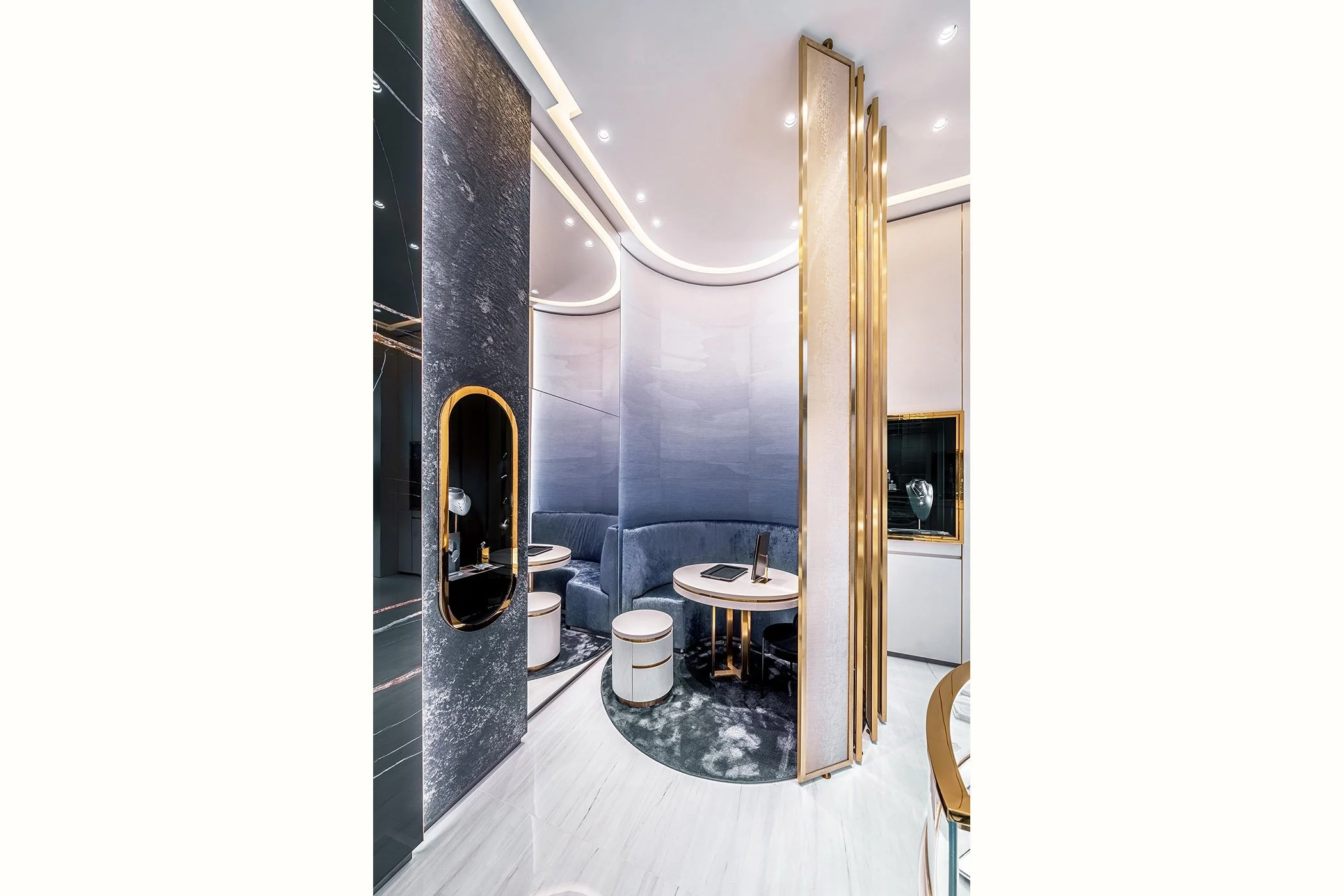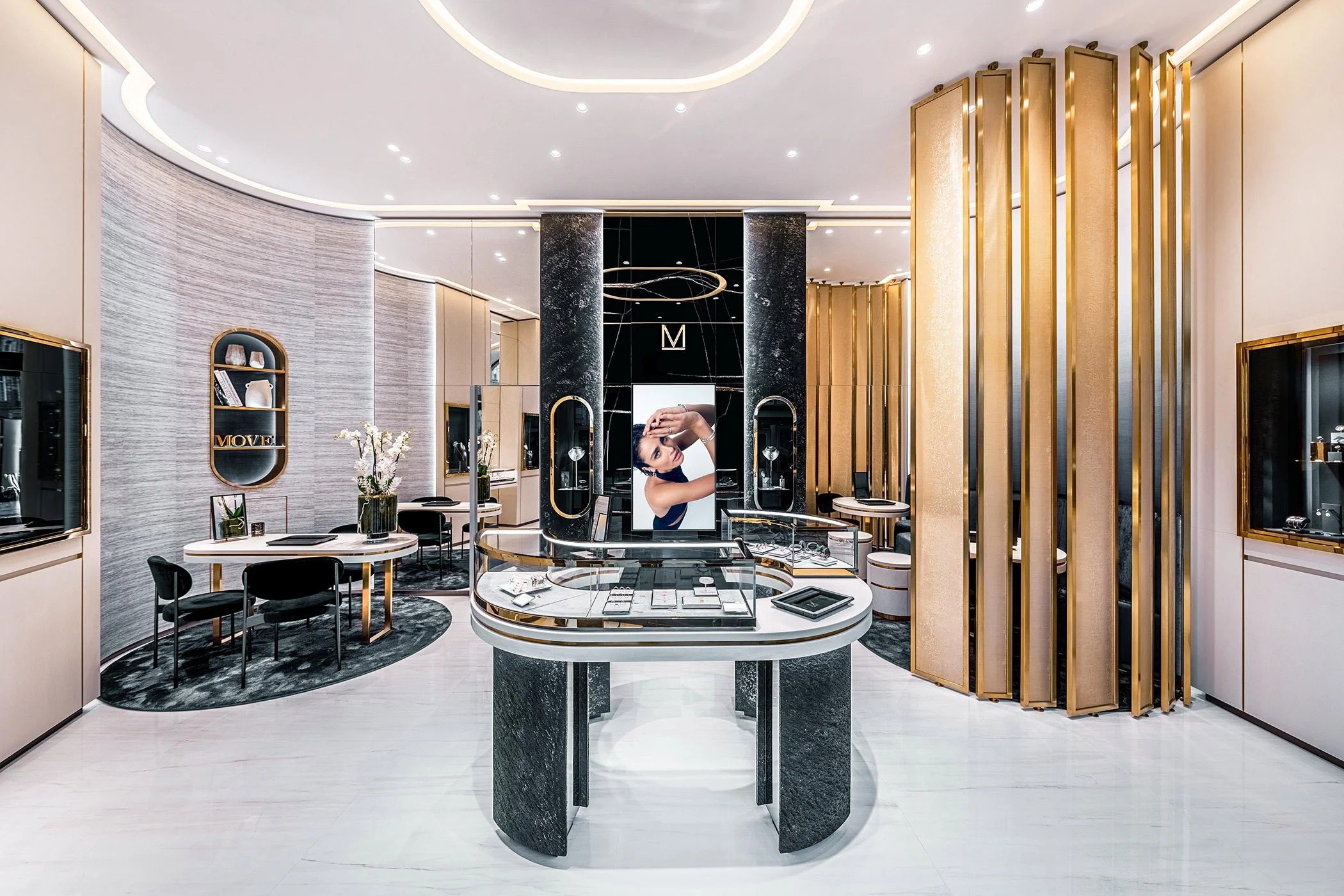 Le projet Messika Strasbourg s’inscrit dans l’aménagement d’une boutique dédiée à la joaillerie contemporaine, au cœur de la capitale alsacienne, portée par Édouard Genton, figure incontournable de la distribution des plus belles maisons de luxe dans l’Est de la France. Pensé comme un écrin à l’image de la Maison Messika, le projet se distingue par une intervention sur mesure, de la conception de l’agencement à la réalisation des éléments de mobilier. Le travail porté sur les volumes, les matières nobles et les jeux de lumière met en valeur les créations joaillières, tout en affirmant une élégance contemporaine et raffinée.