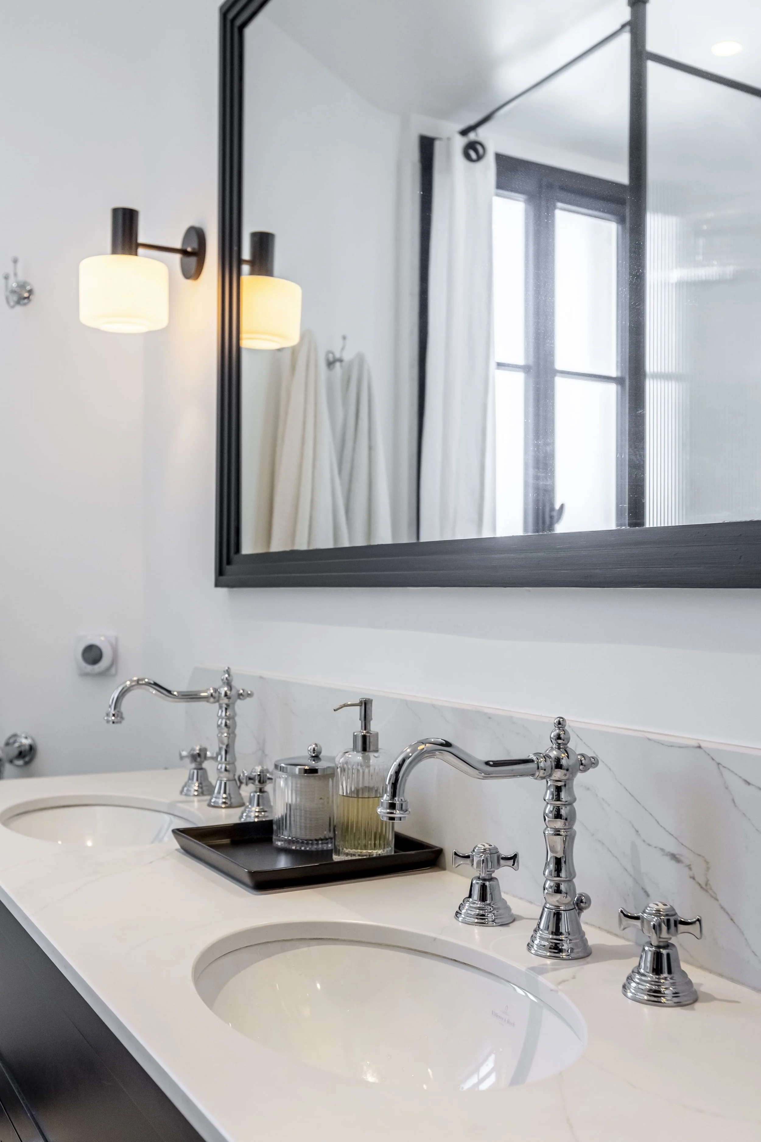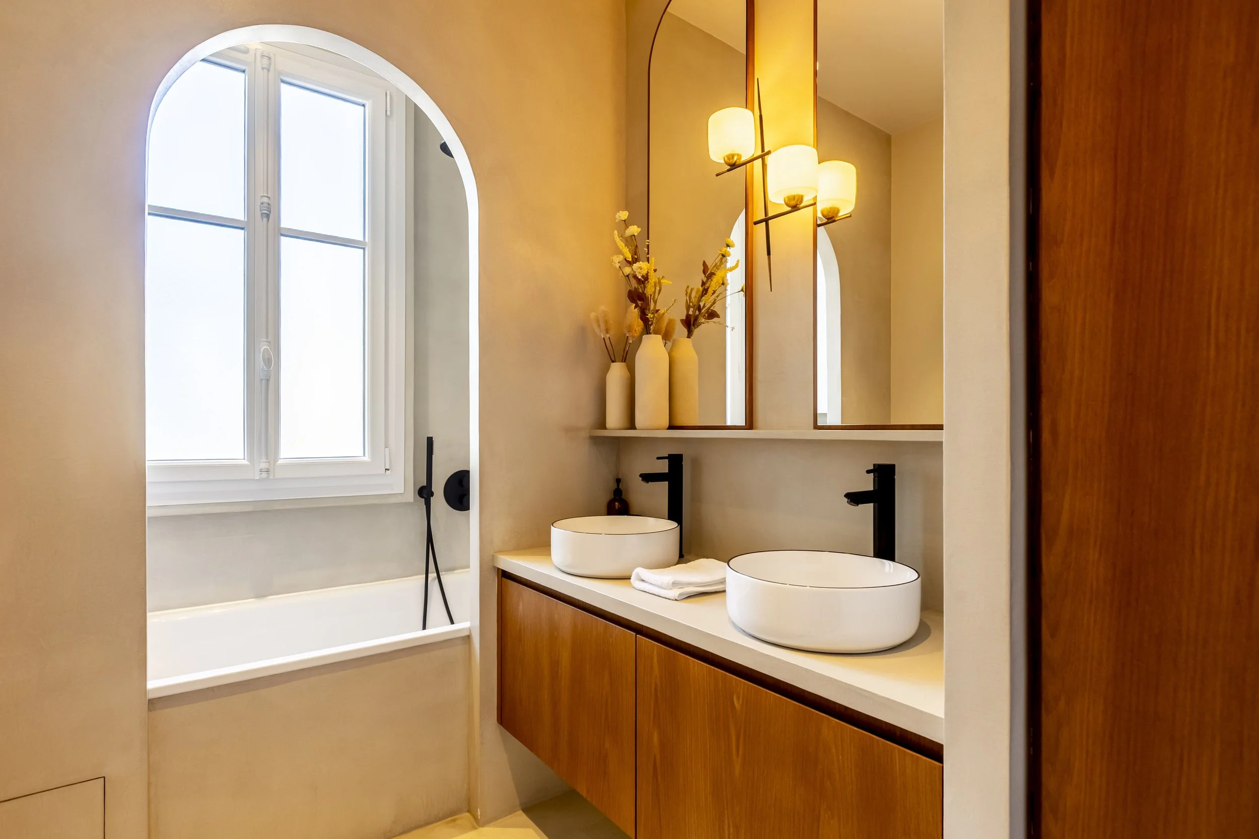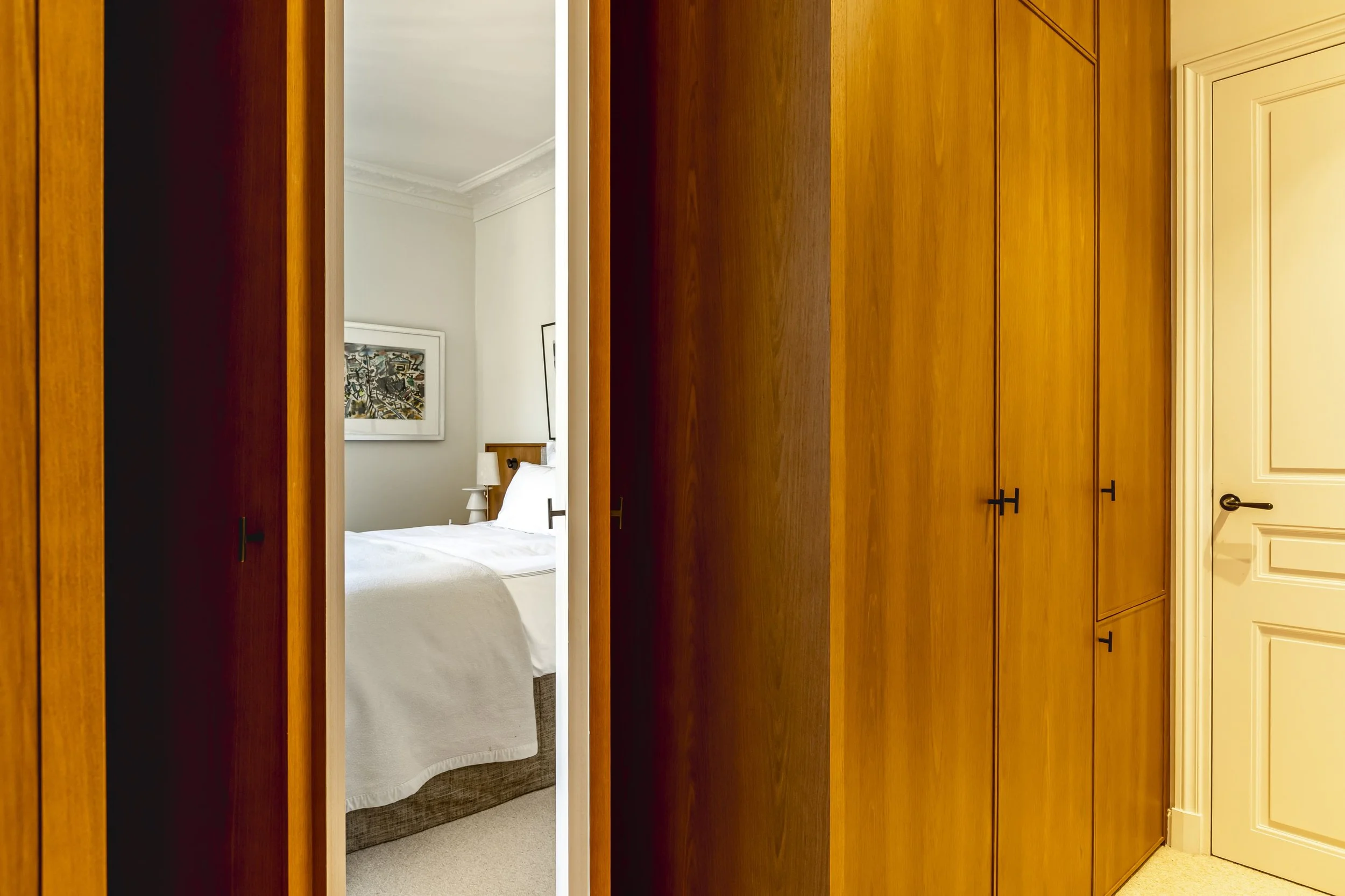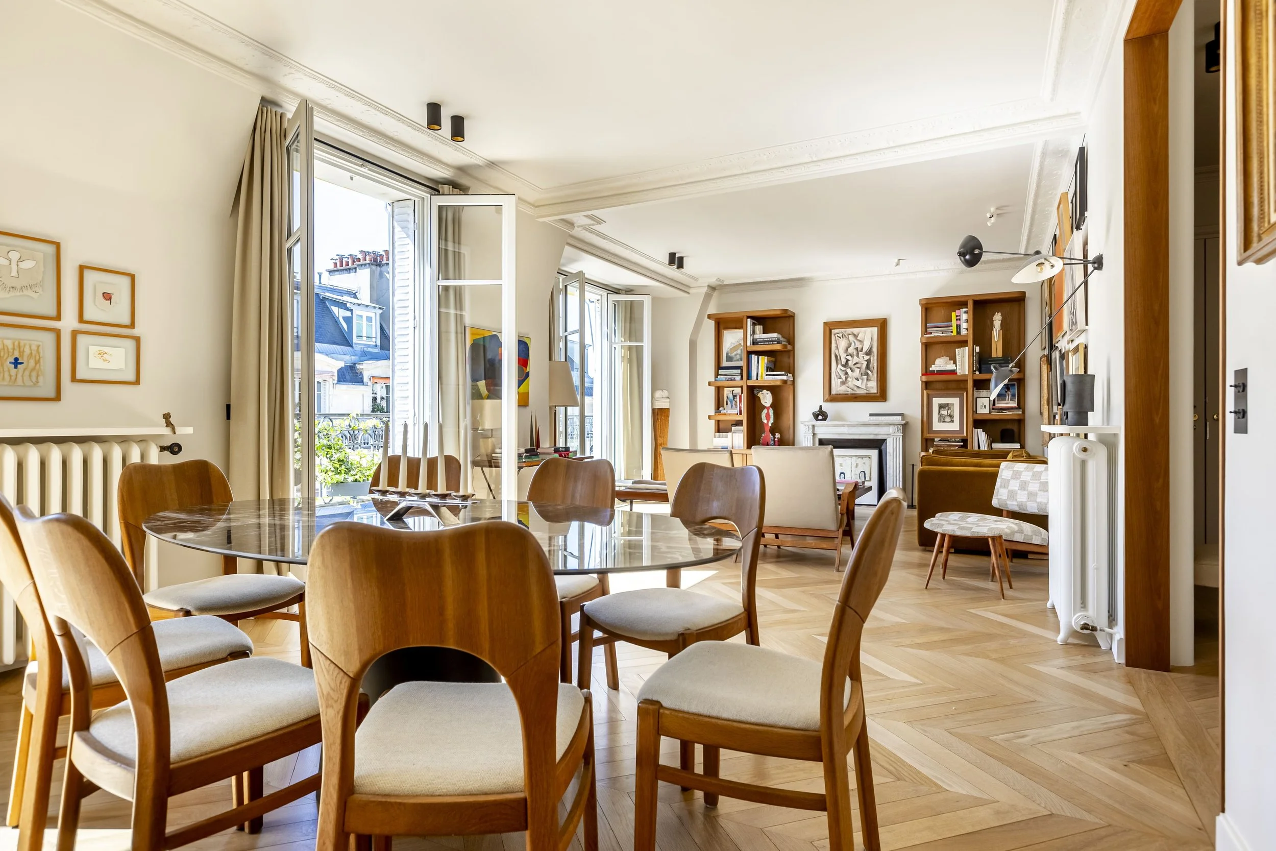 Le projet René Bazin s'inscrit dans la rénovation d'un appartement haussmannien parisien, mené en collaboration avec l’architecte Augustin Liagre et pensé dans un esprit contemporain et chaleureux. Les éléments classiques du lieu — parquet en point de Hongrie, moulures, cheminée, grandes fenêtres — dialoguent avec un mobilier sur mesure en bois, des matériaux naturels et une décoration éclectique d'inspiration design et artistique. Une intervention qui préserve l'âme du lieu tout en lui insufflant une sensibilité résolument actuelle.
